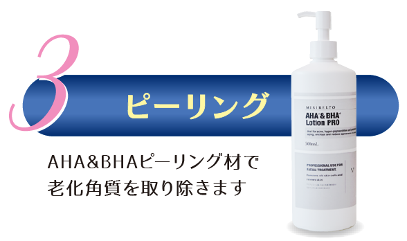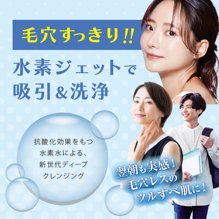 肌にやさしいAHA&BHAローションと、活性酸素を除去する(※)水素水の相乗効果によりホームケアでは落としきれない肌や毛穴の老廃物をしっかり除去し、毛穴レスなすっきり輝く素肌を取り戻します。