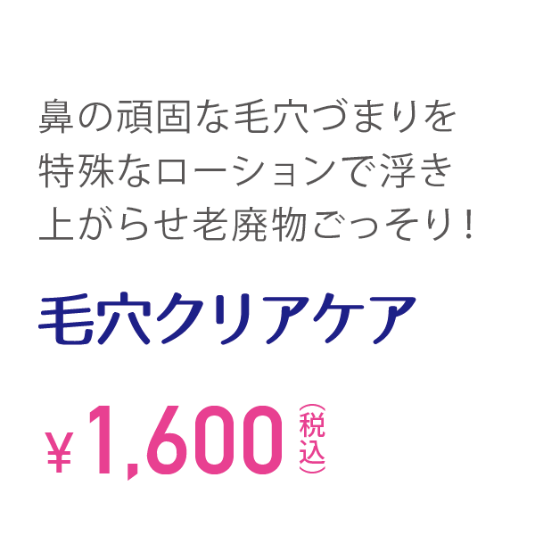 今まで来られた方のほとんどが良くなったと喜ばれておりますが、頑固な角栓は一度で除去するにはお肌を傷めてしまう場合もあります。 回を重ねるごとに毛穴の黒いプツプツも徐々に目立たなく、つるんとした肌に導きます。